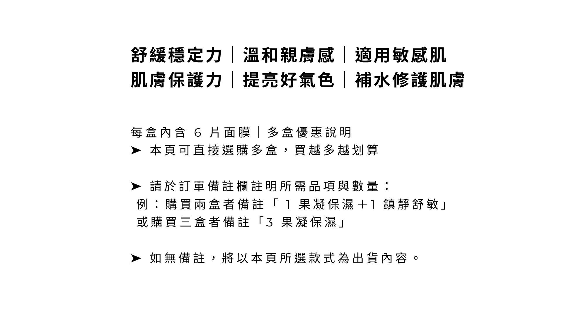 例:購買兩盒者備註「1果凝保濕+1鎮靜舒敏」