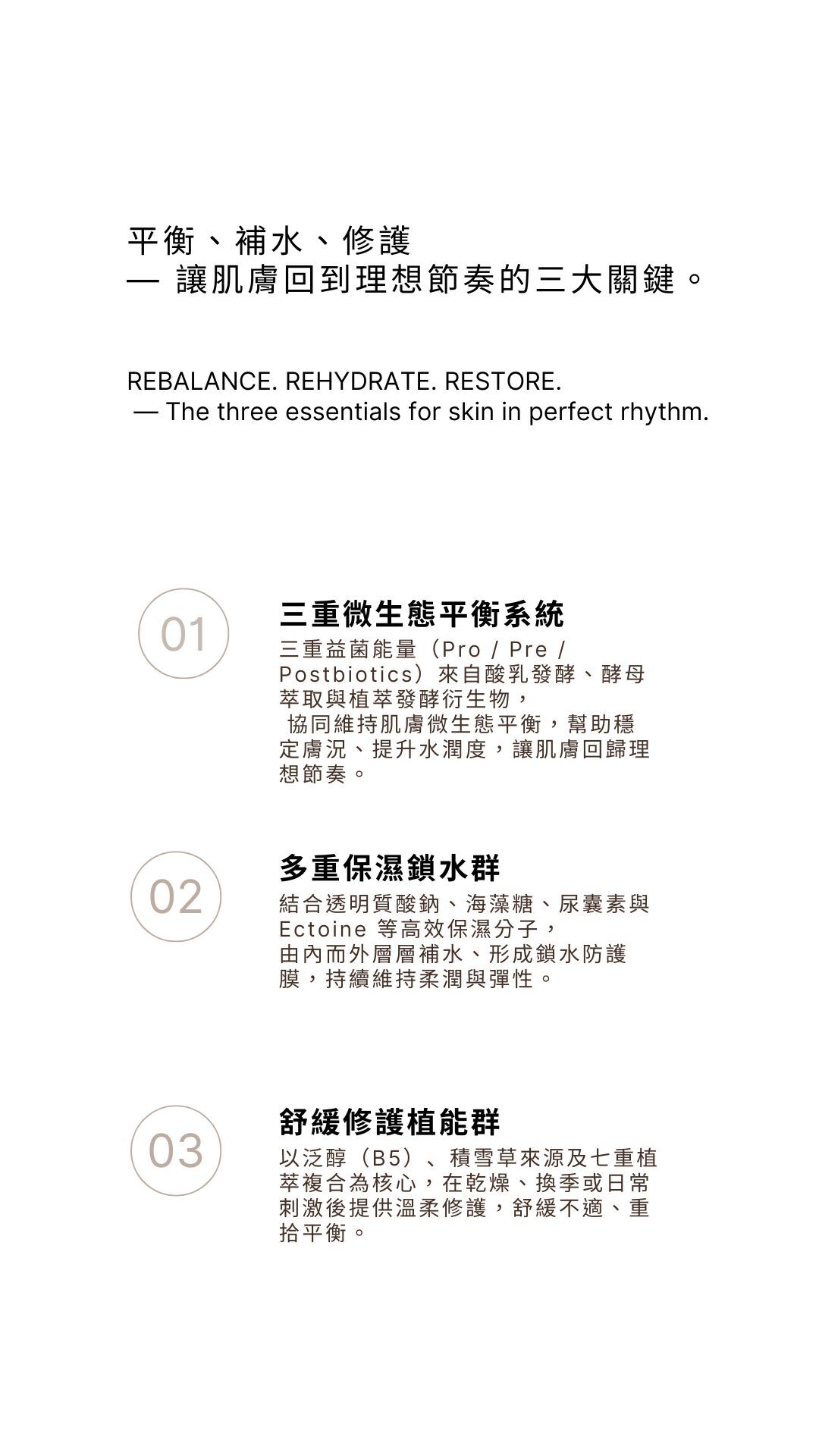 * 三重微生態平衡系統:維持肌膚菌相穩定,讓狀態回到「穩」